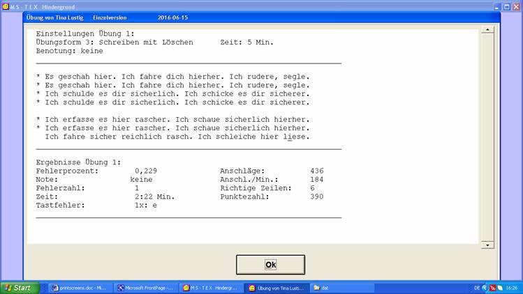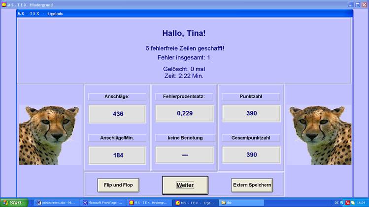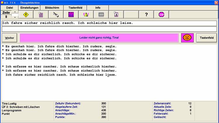 - Ständige Anzeige von Fehlerzahl, Anschlägen, Anschlägen/Minute (optional).