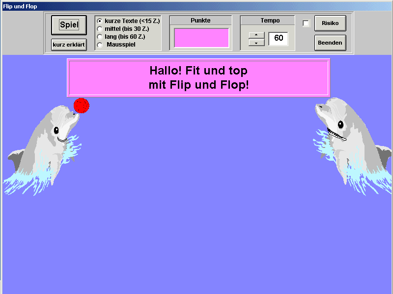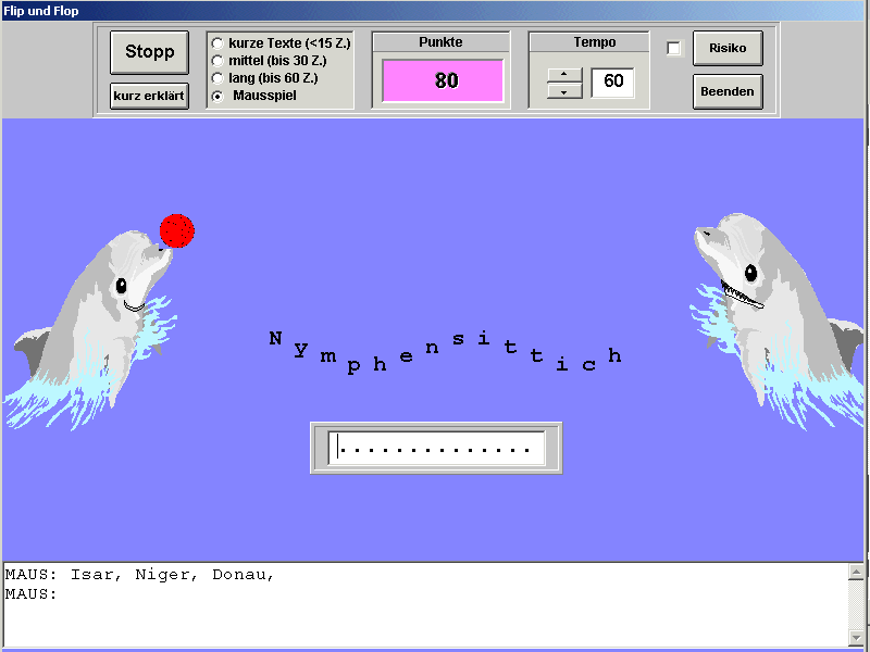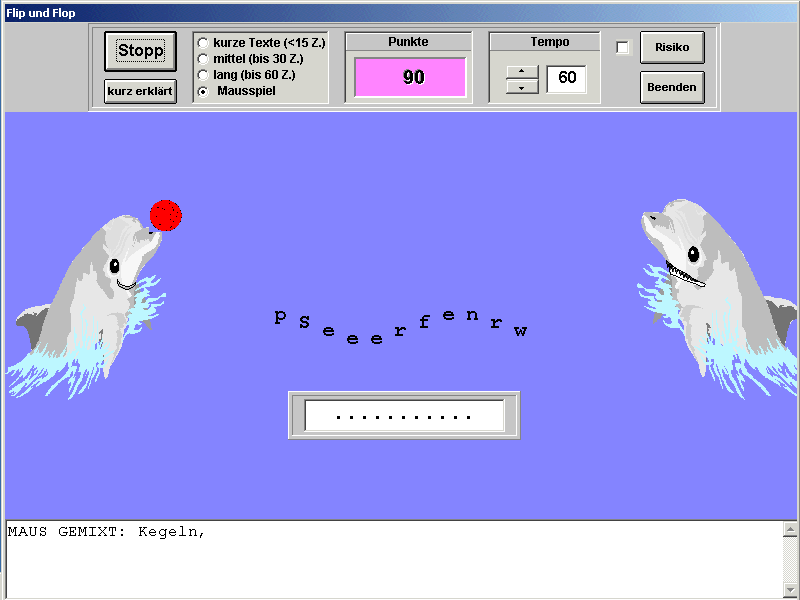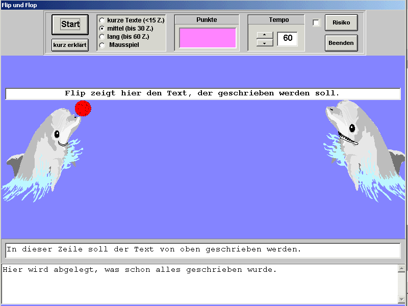 Beim Tastaturspiel zeigt Flip in der oberen Zeile jeweils den Text, der darunter geschrieben werden soll.